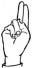 На ћирилици написано ВАЊА БОЦОКИЋ састоји се из 11 слова [?]. Исписано ћириличном једноручном азбуком за глувонеме: